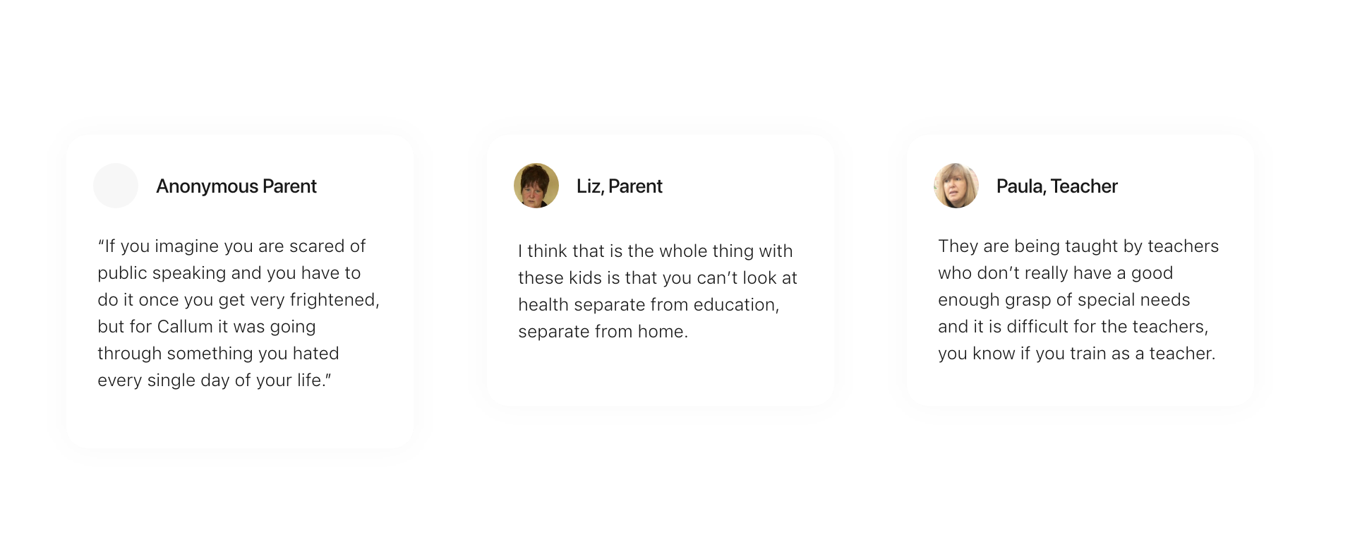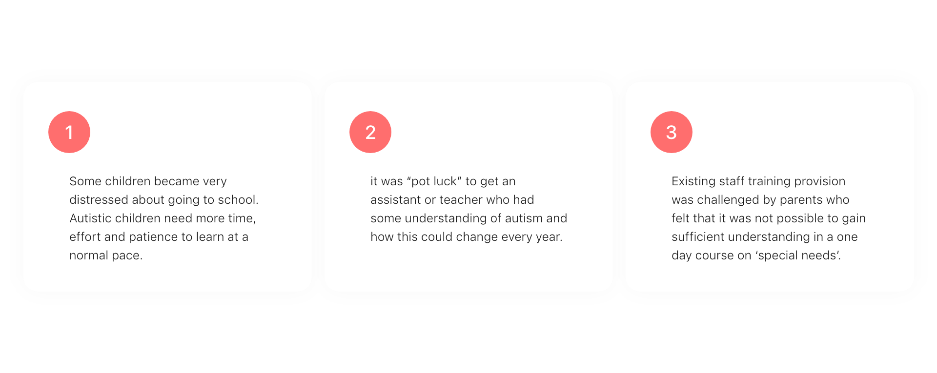 To research users, we looked for stories and help from people on the internet, family members and teachers who have had experience working with autistic kids.