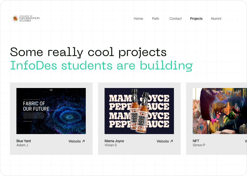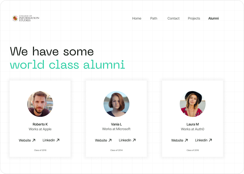 A page for the students to be able to connect with the alumni with their LinkedIn or portfolio links provided could help give students an insight into the type of work they will be doing in the industry. This will give them a more commercial outlook of the program they have enrolled in.