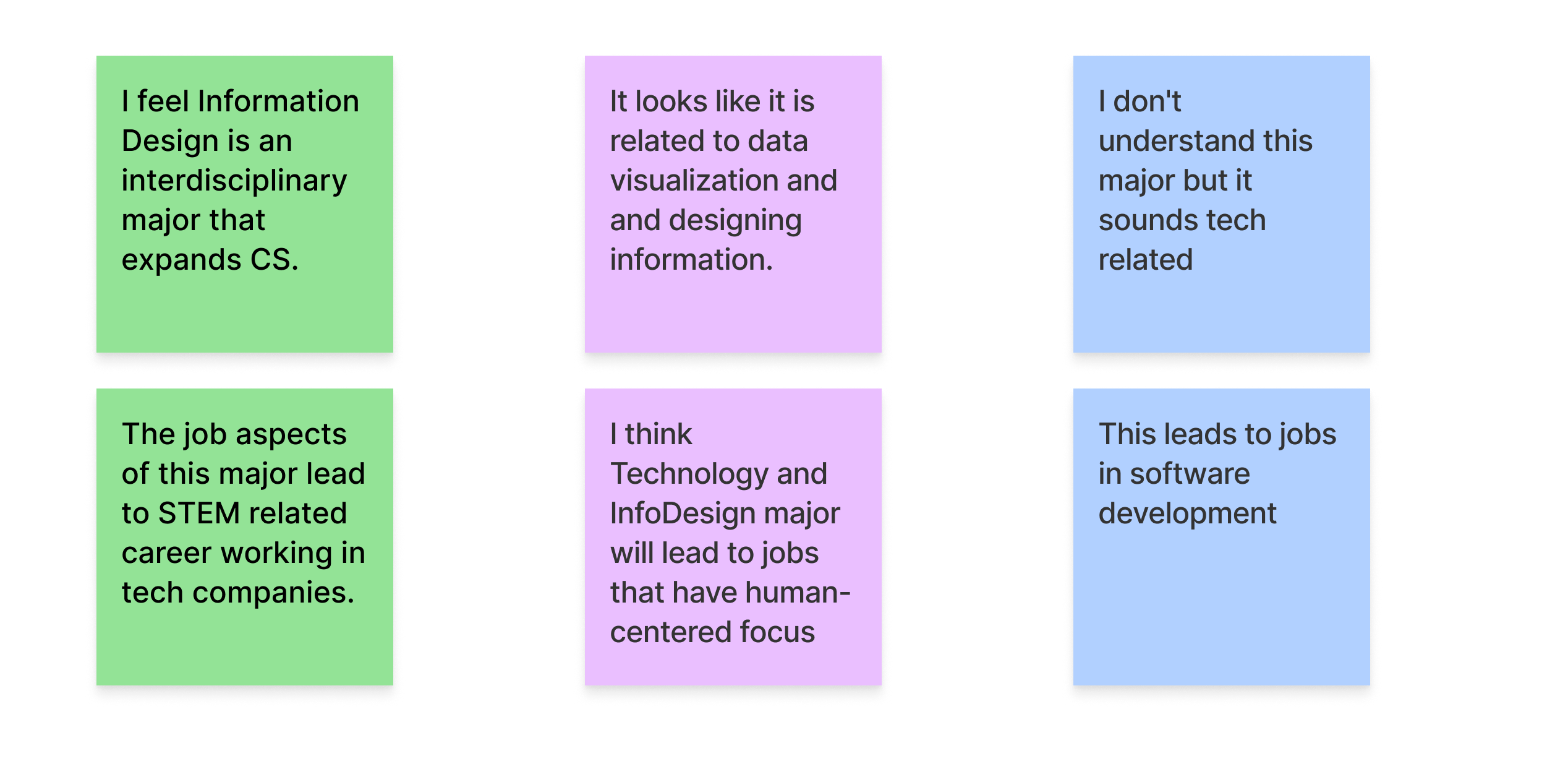 We found from our study that people were thrown off by the name of the program Technology and Information Design. The name led them to believe that the program had something to do with Technology and STEM, and therefore the people pursuing the course must be analytical and data driven.